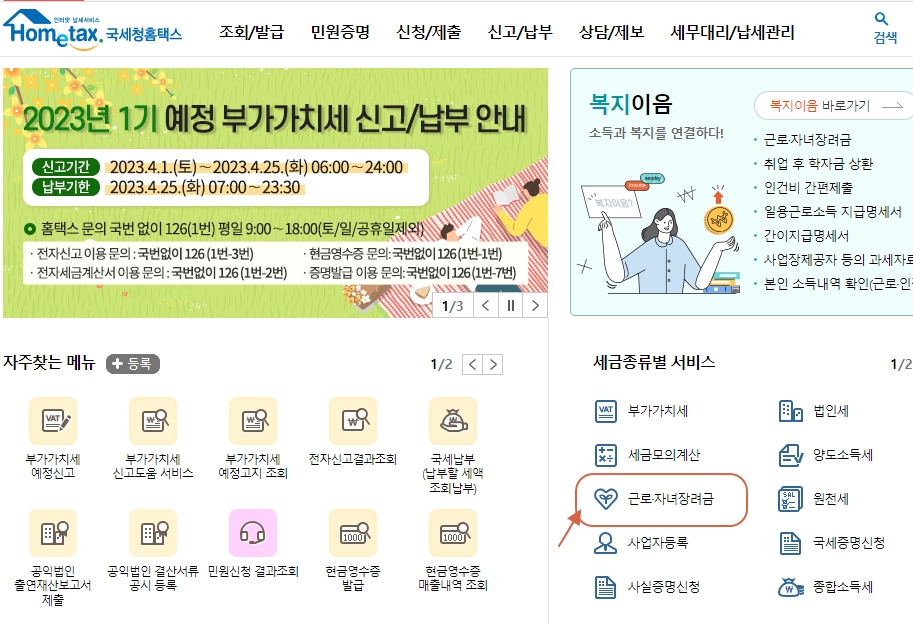 > '근로,자녀장려금 신청' 선택