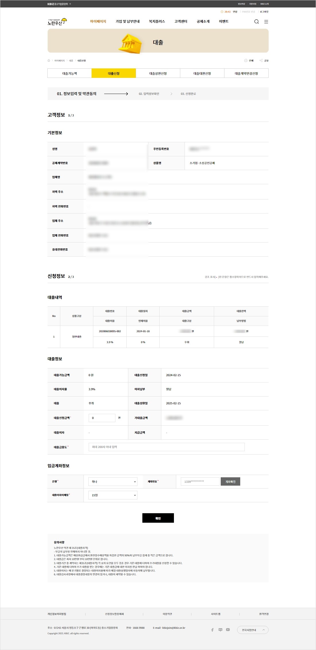 - 홈페이지 로그인 -> 대출신청 버튼 클릭