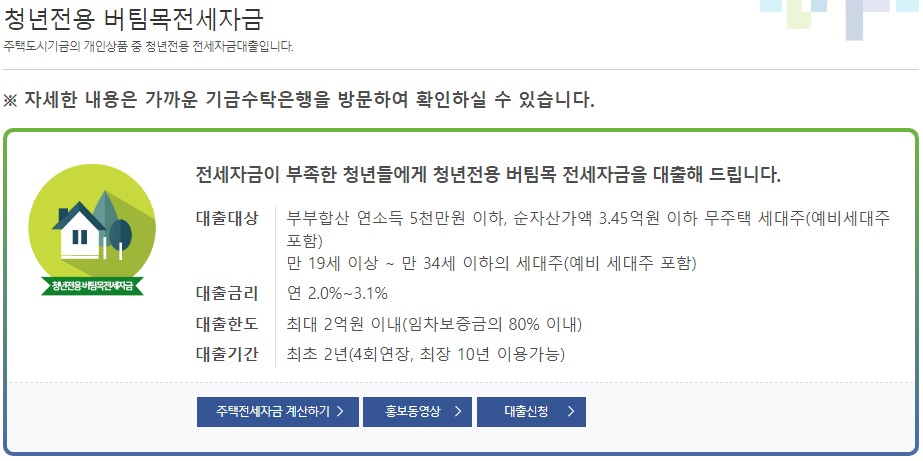 대출금리 1%까지 가능한 버팀목 전세자금대출 조건 (청년전용 )