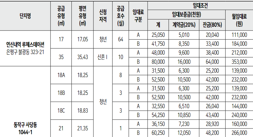 모집 입주자 수가 연신내를 빼고 문정역 역세권 청년주택에 비하며 현저히 적은 수이긴 하나