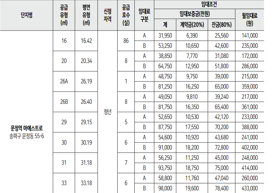(문정역 역세권 청년주택 등 서울 역세권 청년주택 임대조건)