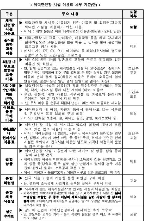 - 체력단련장 시설을 이용하기 위한 이용권 및 회원권(강습을 제외한 시설을 이용하기 위한 비용)