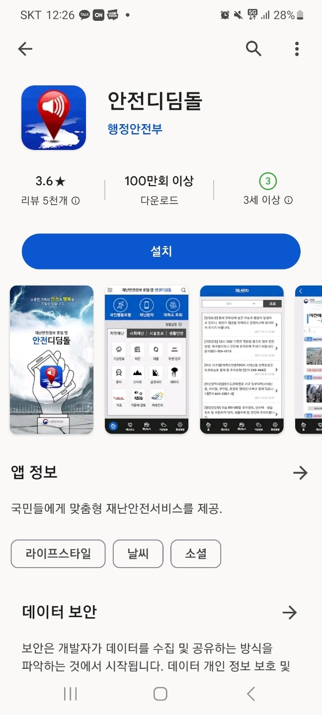 안드로이드 : https://play.google.com/store/apps/details?id=kr.go.nema.disasteralert_new&hl=ko&gl=US