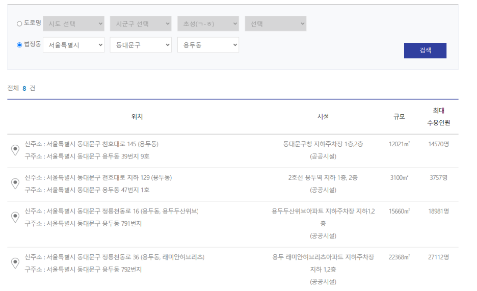 그럼 이렇게 주변에 민방위대피소를 확인할 수 있습니다.