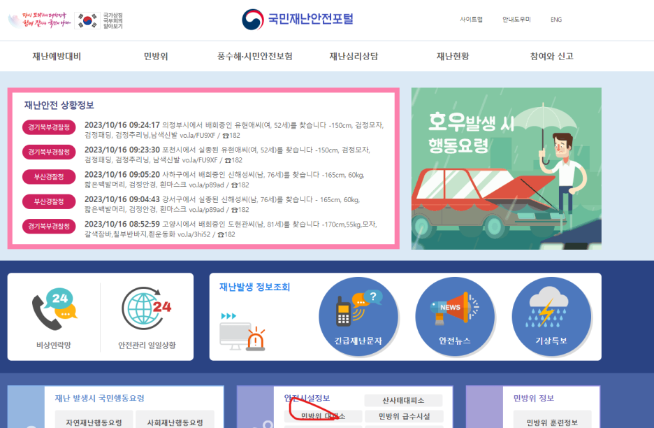 오늘은 내가 사는 곳의 민방위대피소(안전한 장소)는 어디인지 알아보겠습니다.