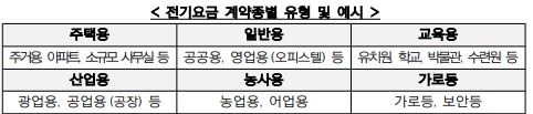 3) 일반용, 산업용, 농사용, 교육용, 주택용 중 비주거용 전기요금