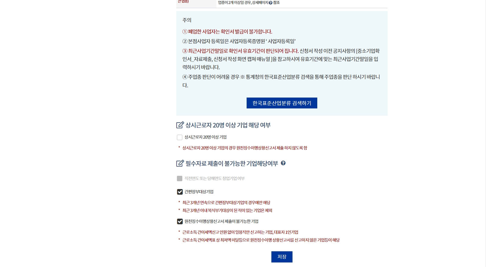 회사명, 기업유형, 대표자명, 사업자등록일, 주업종, 근로자 수 등을 입력하면 됩니다.