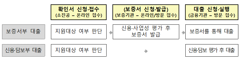 * 신용보증서(지역신용보증재단)을 담보로 신청하는 경우 보증기관과 사전 보증상담을 통해 보증가능한도 확인 후 신청해야합니다.