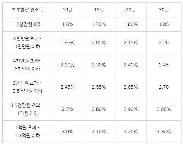 2) 연소득이 8500이하인 경우 0.55%P가 가산됩니다.