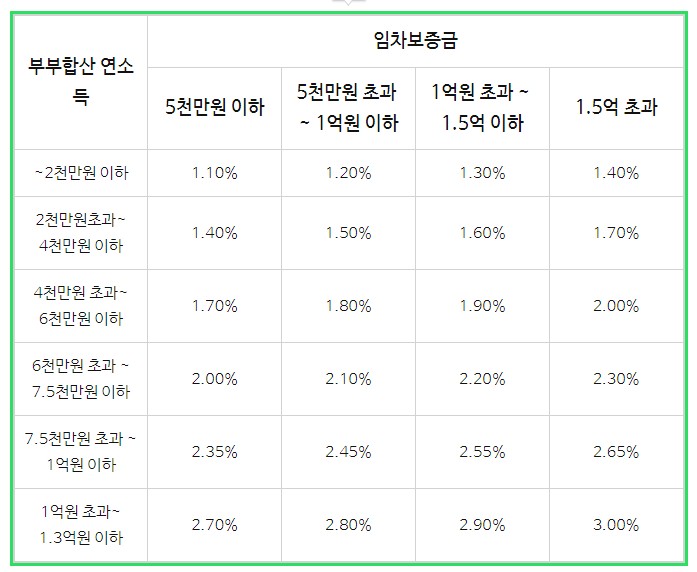1) 금리는 연 소득과 임차보증금에 따라 다릅니다.