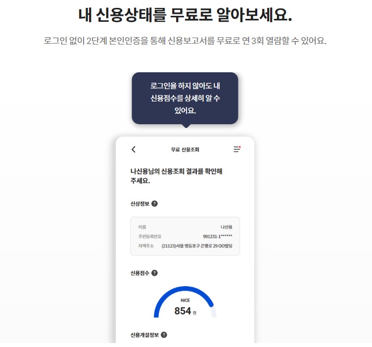 신용정보조회사이트 신용점수조회 무료 연 3회!