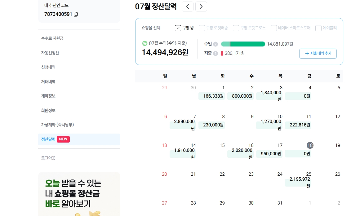 감안하고 했고 특히 쿠팡은 정산이 1~2달까지 걸리니까요.