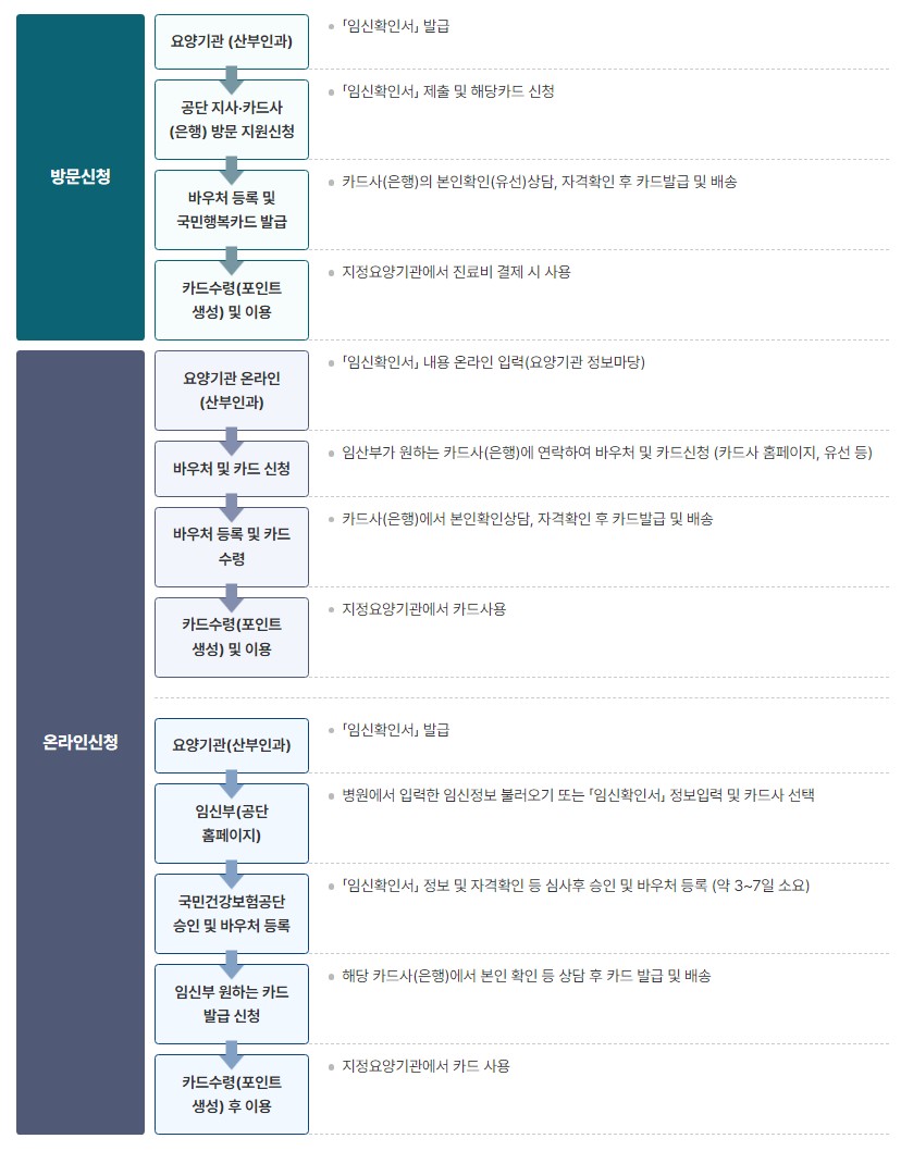 3) 임신부가 카드사 홈페이지나 카드사(또는 은행)에 전화로 바우처 신청하면 됩니다.