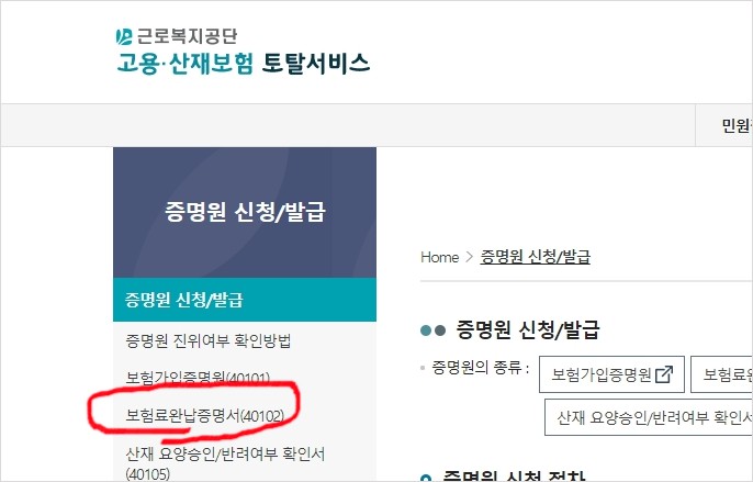 자영업자 고용보험 완납증명서 발급