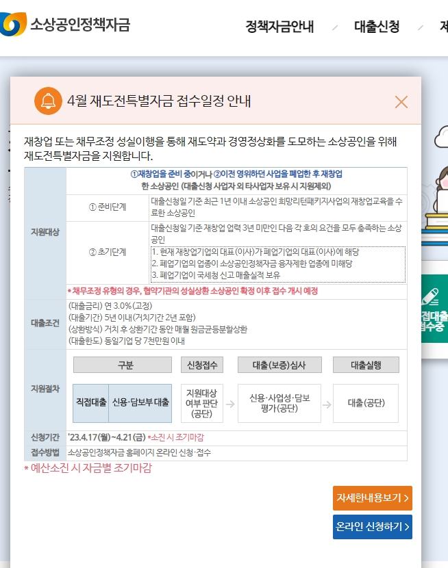 소상공인진흥공단에서 재도전, 재창업 소상공인을 위한 특별자금 대출지원을 시작합니다.