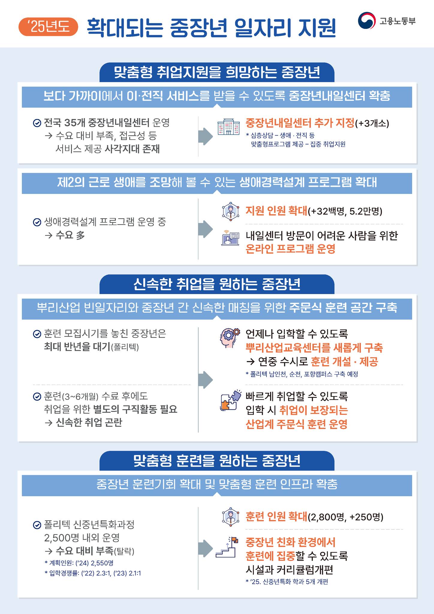 2025년부터 중장년 일자리 정책이 '중장년 내일 패키지로 개편되어 강화됩니다.