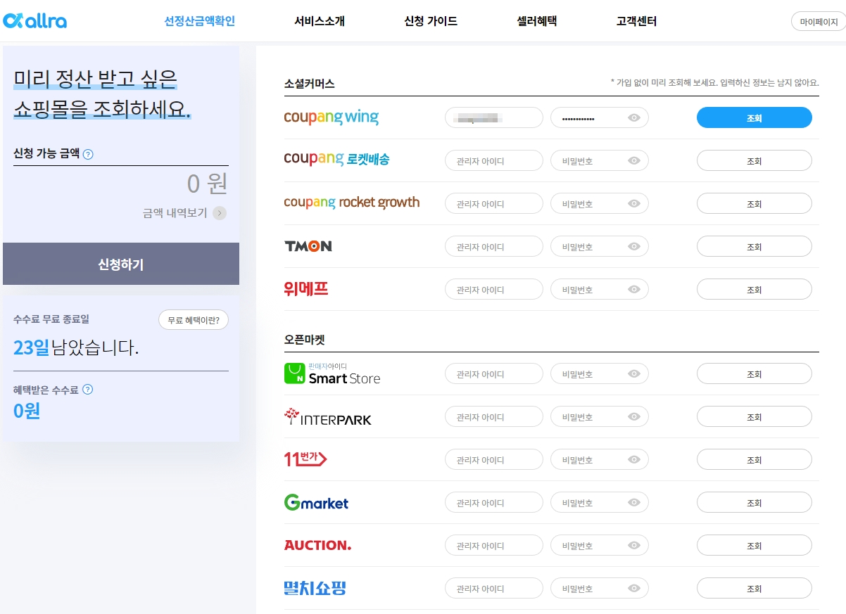 쿠팡의 경우 선정산용 추가계정을 만들어야합니다.