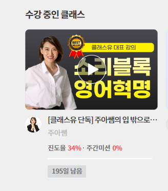 그러던 차에! 클래스 유 에서 주아쌤 영어 강의가 오픈된 것을 발견했습니다.