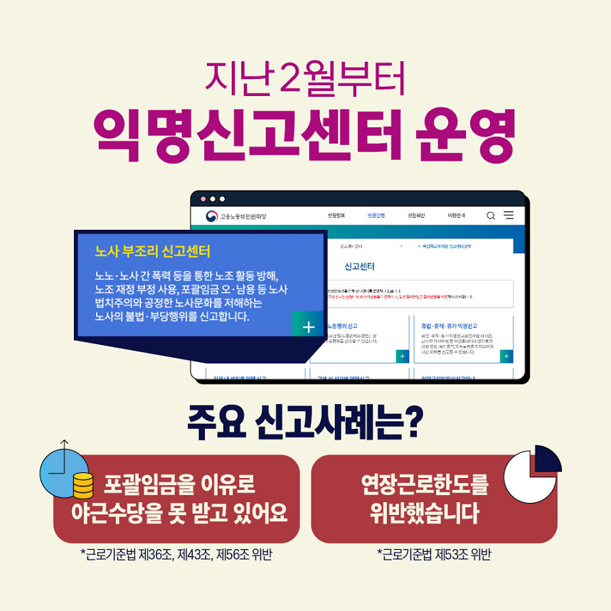 작년에는 기획감독을 실시했고 익명신고센터도 운영하고 있습니다.