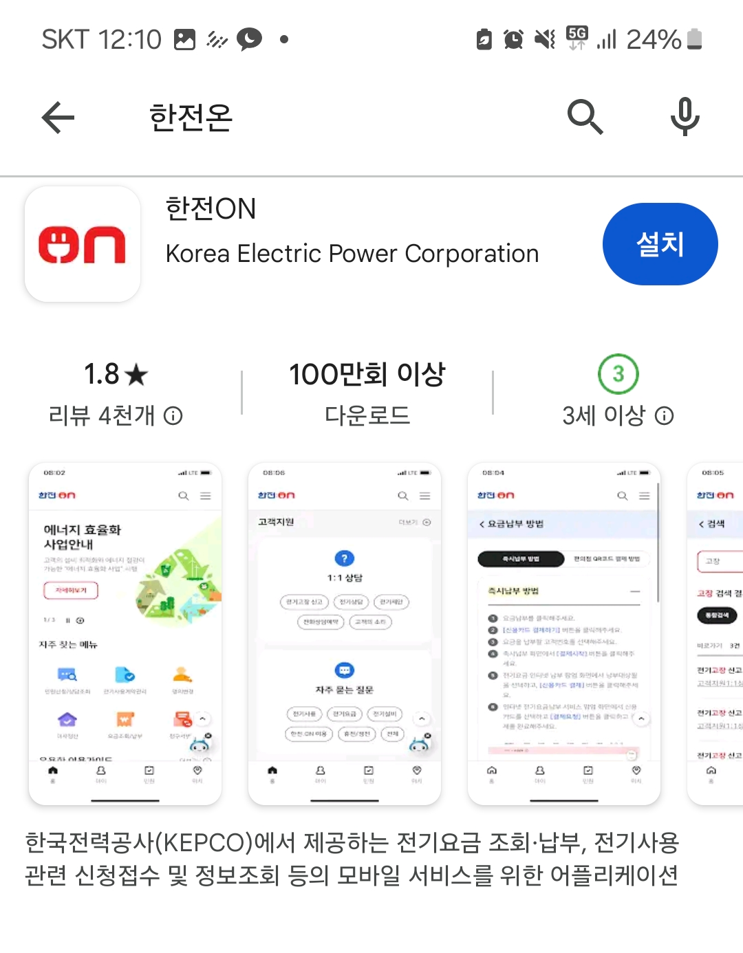 한전 앱인 '한전ON'에 접속하시면 되십니다.