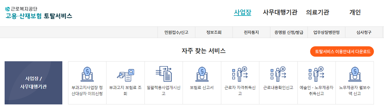 1. 고용, 산재보험 토탈서비스에 들어갑니다. (이미지링크)