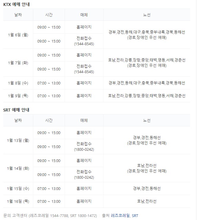 • KTX: 2025.1.6(월) ~ 1.9(목)