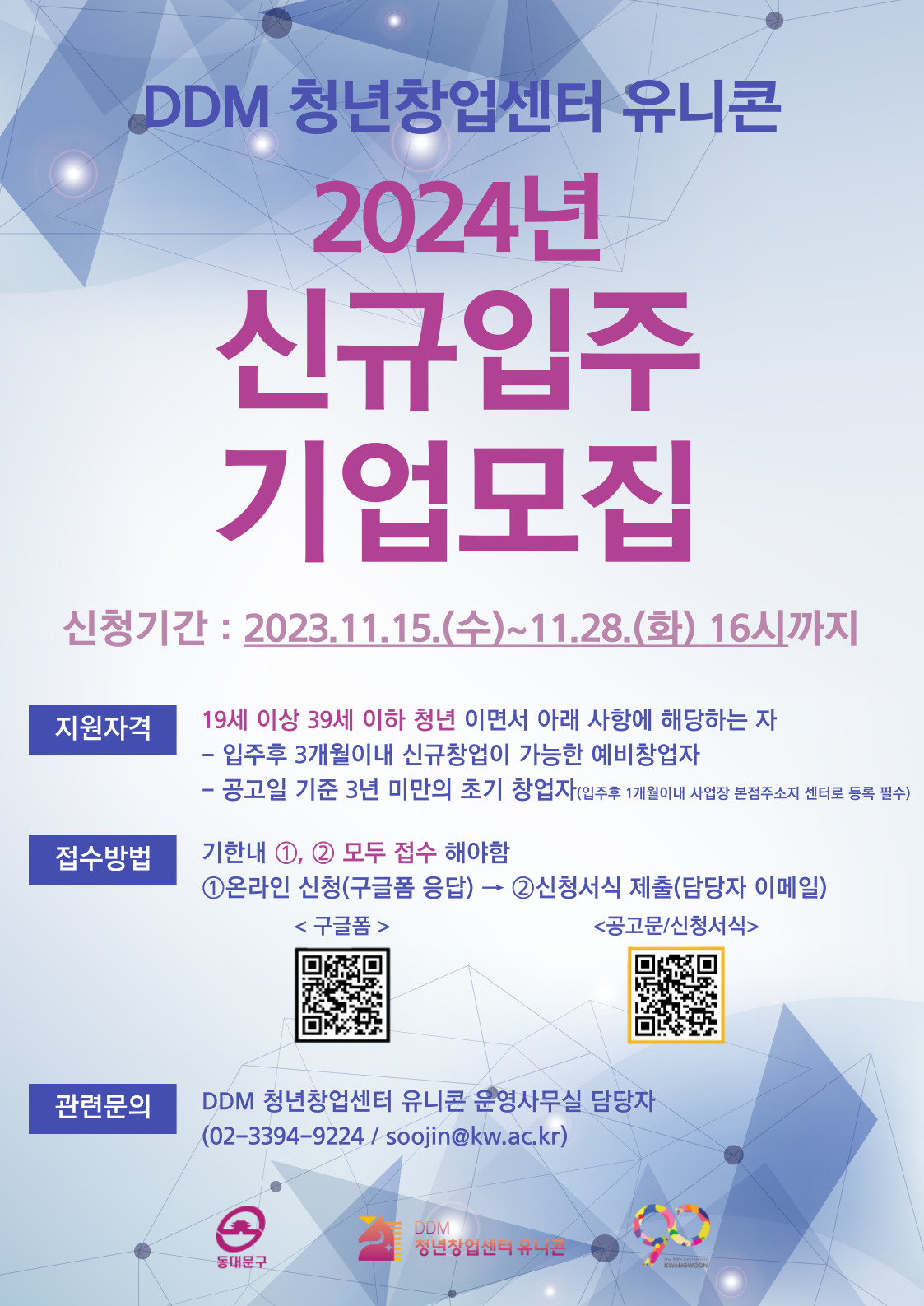 ·    DDM 청년창업센터 유니콘 운영사무실 02-3394-9224