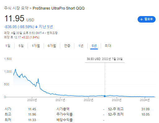 SQQQ (Proshares UltraPro short QQQ) -s형이라고 하겠습니다