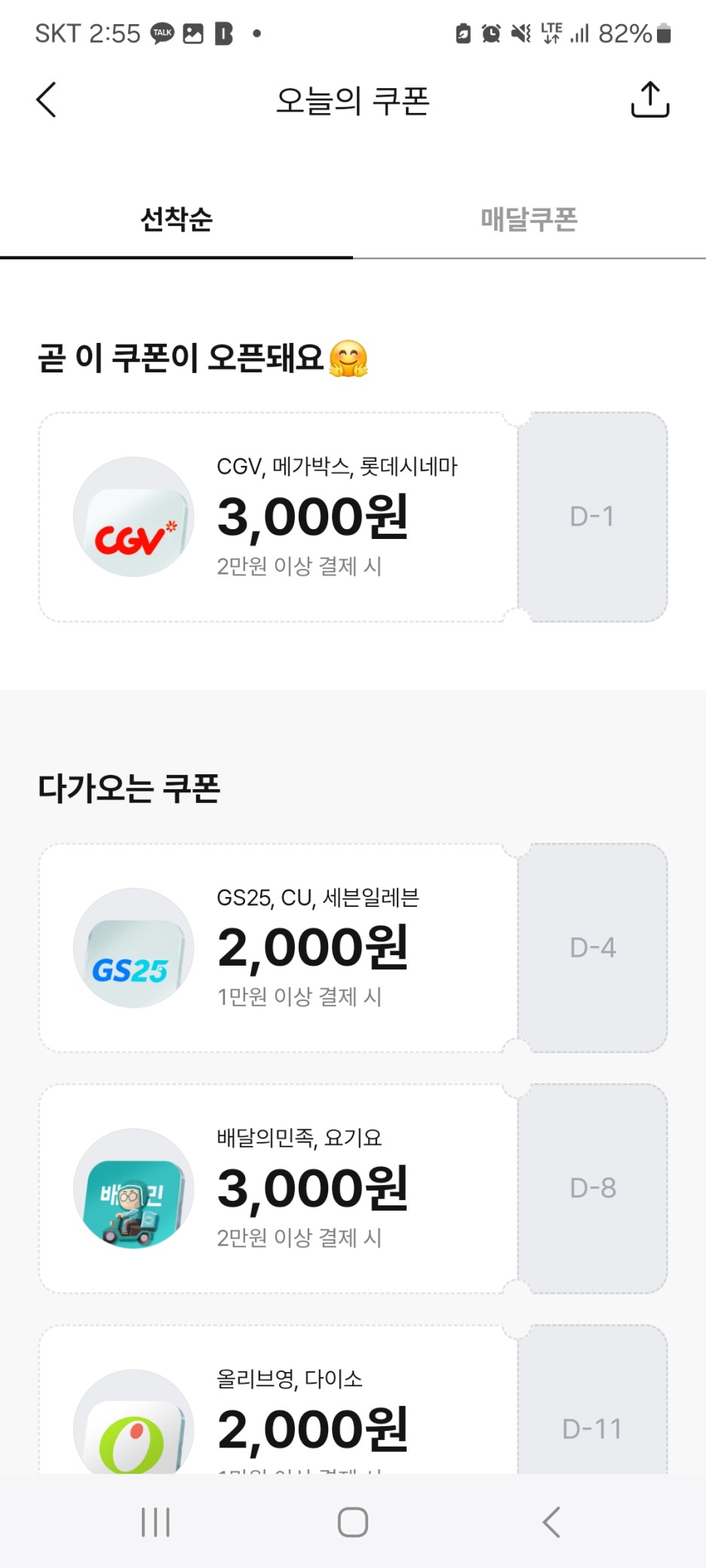 보통 카드사 쿠폰 알람 와도 잘 안 사용합니다.