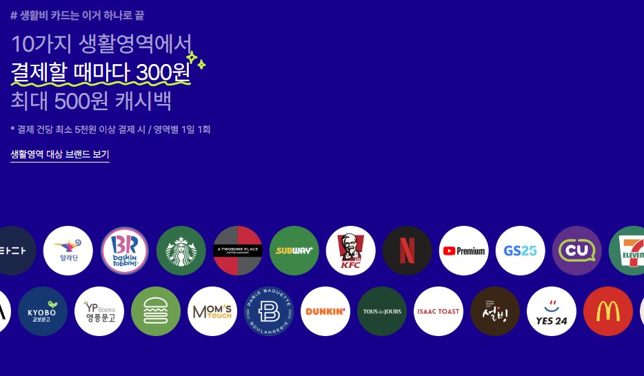 캐쉬백이 되는 곳이 엄청 많다는 것이 엄청 중요한 이점입니다.