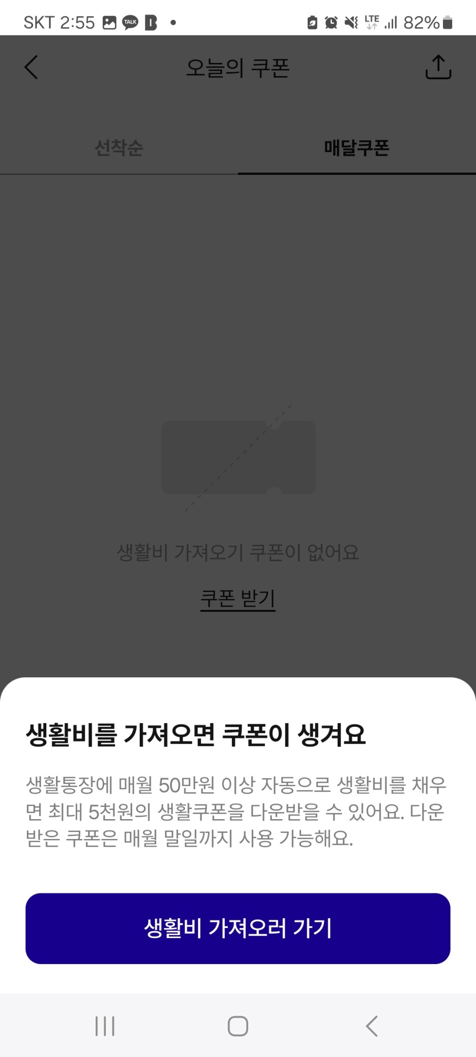 생활비 자동이체를 할 경우 5천원 쿠폰이 발급된다고 하네요.