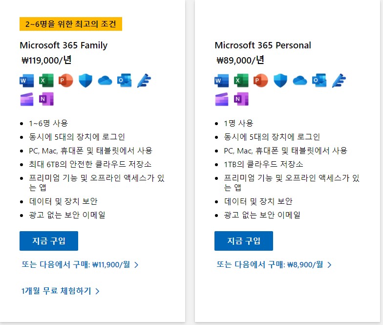 ✔ Microsoft 365가 아닌 기존 1회성 구매도 여전히 가능합니다.
