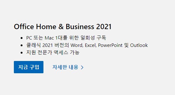 MS 오피스를 다양하게 쓰지 않고 대표적인 워드나 PPT , 엑셀만 쓰는 경우 이것이 더 경제적일 수 있습니다. 아래 이미지를 클릭하면 1회성 구매 페이지로 링크됩니다.